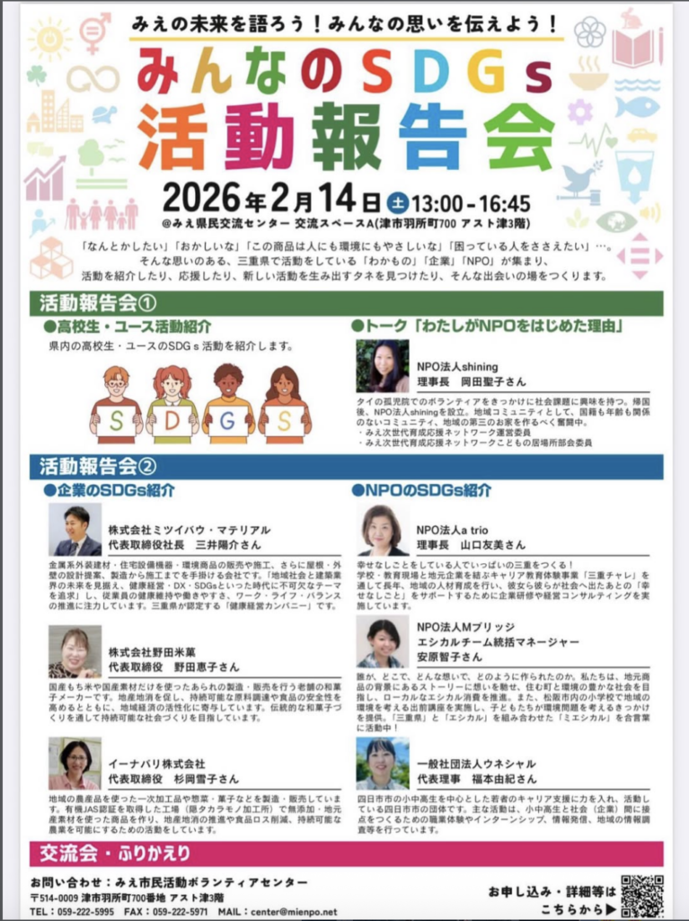 2026.2.14(土)13:00〜16:45 @アスト津【みんなのSDGs活動報告会】